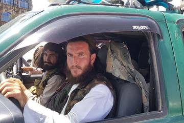 W posiadaniu karabinu są również talibowie, walczący z wojskami koalicji w afganistanie. „bojownicy", po arabsku jest to liczba mnoga od słowa مجاهد mudżahid, dosł.